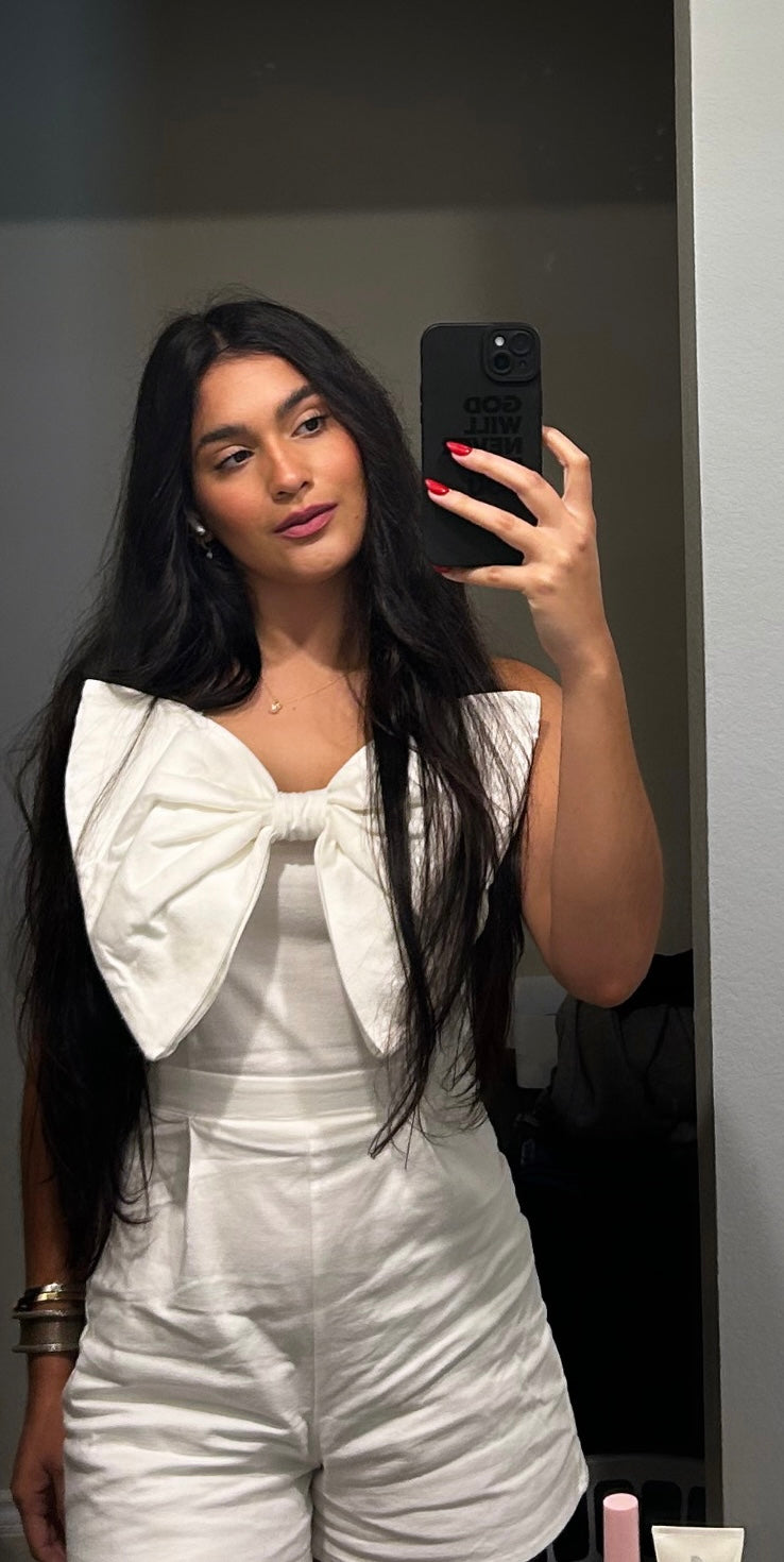 Playful meets polished in the Lori’s Romper — a statement piece designed to stand out. Featuring a halter neckline and an oversized bow detail at the front, this sleeveless romper is all about confidence and charm. Smocking and a hidden zipper at the back ensure the perfect fit, while side pockets add a touch of ease. Fully lined, lightweight, and ready for any occasion.
